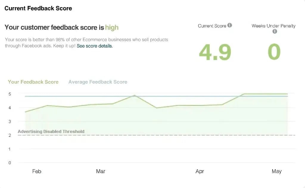 Our Facebook Official Customer Feedback Score Has Reached 4.9 out of 5. The score is better than 98% of other Ecommerce businesses who sell products through Facebook ads. We take very seriously our product quality and customer service.Â