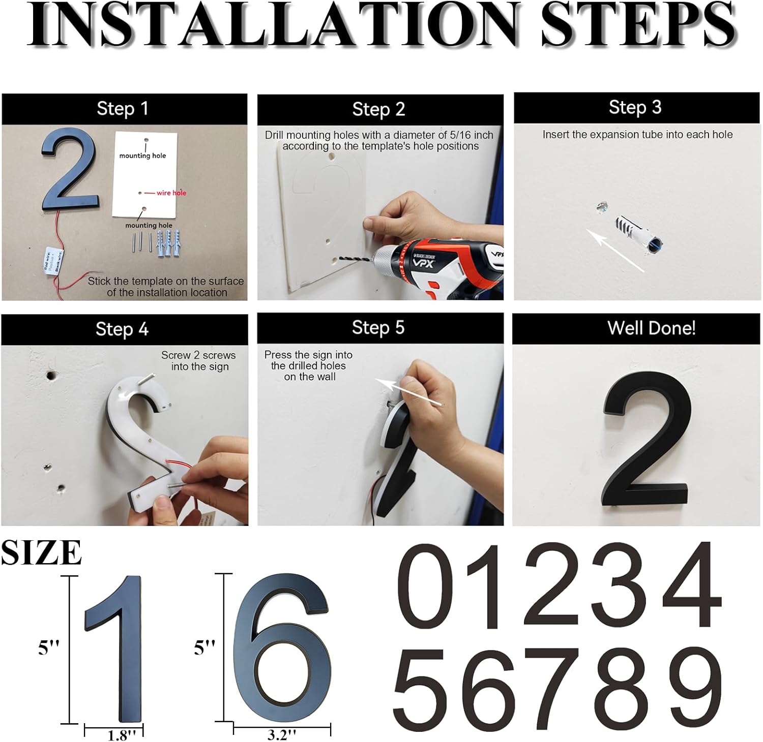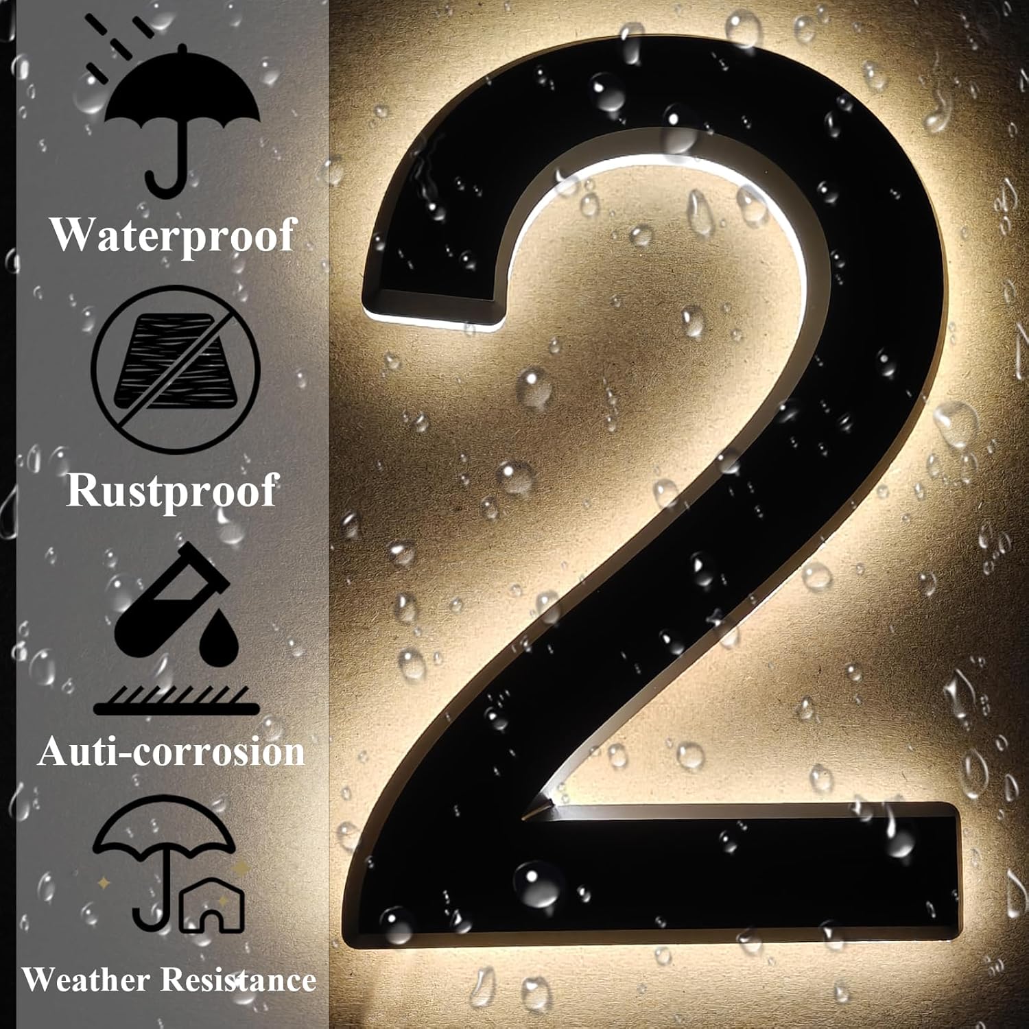 Elevate your home's exterior with our Lighted House Numbers. These LED signs are designed for outdoor use, ensuring visibility from a distance. Perfect for illuminating your house, they make it easily noticeable.2.7-inch doorplate light with no writing requirements.