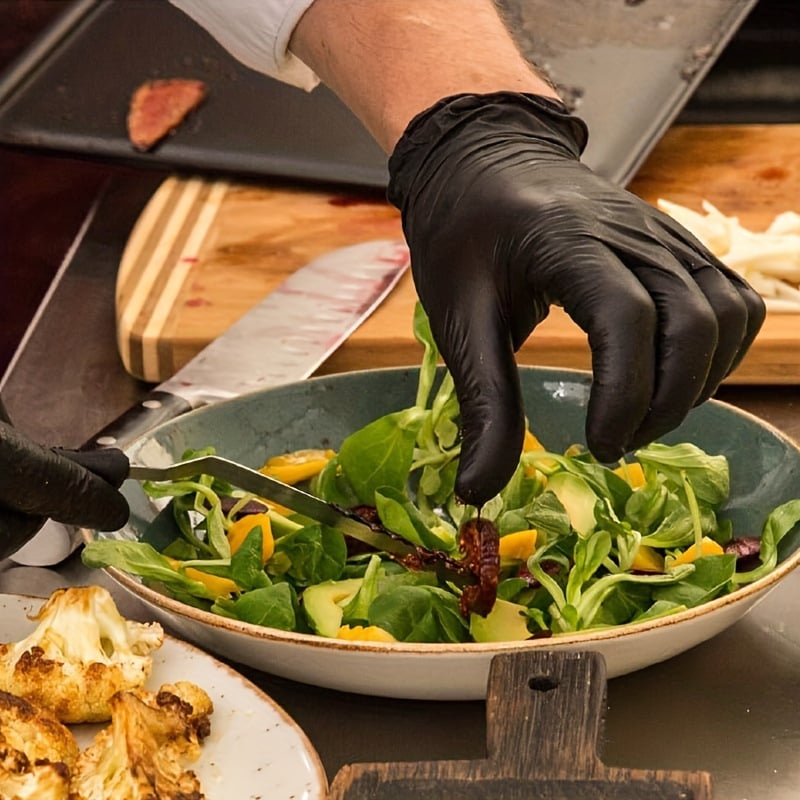 - Livsmedelssäkra och mångsidiga – De svarta engångshandskarna är livsmedelsgodkända, latexfria, DEHP-fria och tillverkade av bättre material för personer med känslig hud. Vi erbjuder storlekarna medium, large och xl. De är perfekta för hårfärgning, industriellt bruk, livsmedelshantering, matlagning, matberedning, grillning, städning, kök och mycket mer.